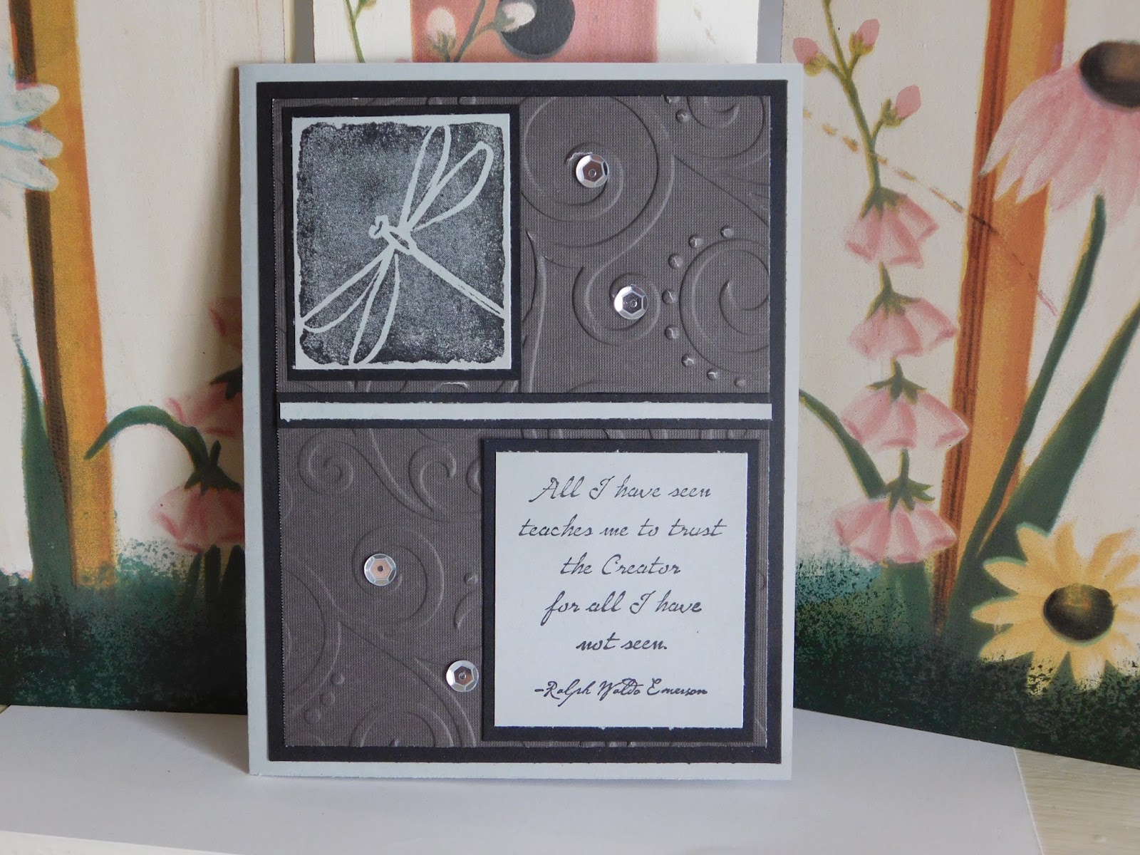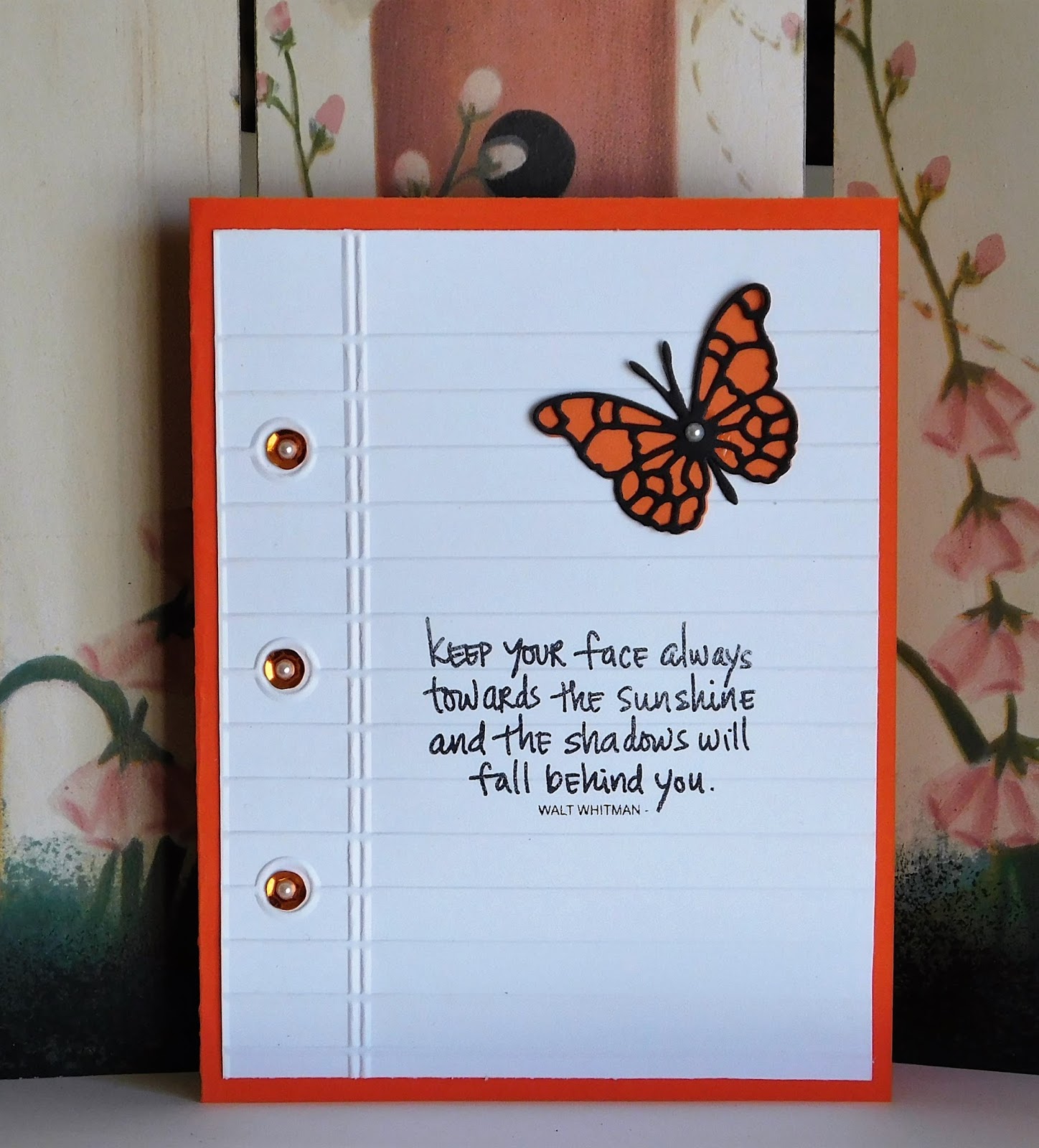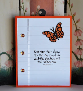 I am going to enter my card in two challenges today. The first is a color challenge at: Sunday Stamps Blog The colors were so fun to work with brown, pink and white. The second is a sketch challenge at: Mojo Monday Blog. I thought this was a fine design. I used an embossing folder for the background, and an older stampin up set for the sentiment. I had to use that new butterfly die again.. I think it makes a marvelous addition to the card. A few little embellishments to spruce it up a bit and there ya have it.