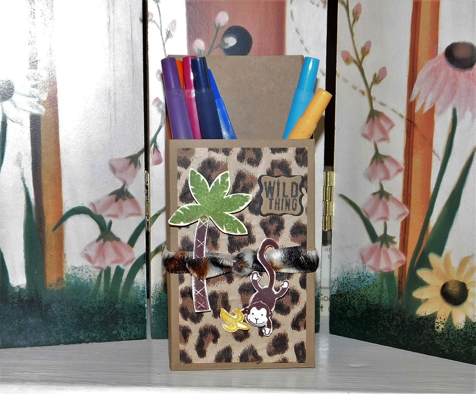 Today I have boxes and more boxes. I think they are so fun to make. Up first is this cute wild kingdom pencil/pen box. It works wonderfully for holding desk top supplies.