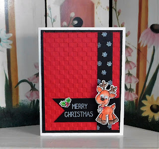 I just had to show another cute character from my new Avery Elle stamp set called North pole pals. In my last card I used the Santa and Mrs. Claus, today we have the reindeer (one of them) gosh I think they are super sweet. I'm going to enter this card in the sketch challenge at: