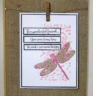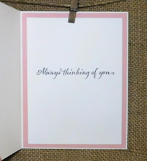I used two different ribbons on this card. I really like how it sparkles. I had to tell myself "no" to adding more little embellishments to the card. I'm quite pleased with how it turned out. Sometimes it's nice to make a different size card then what I usually make.